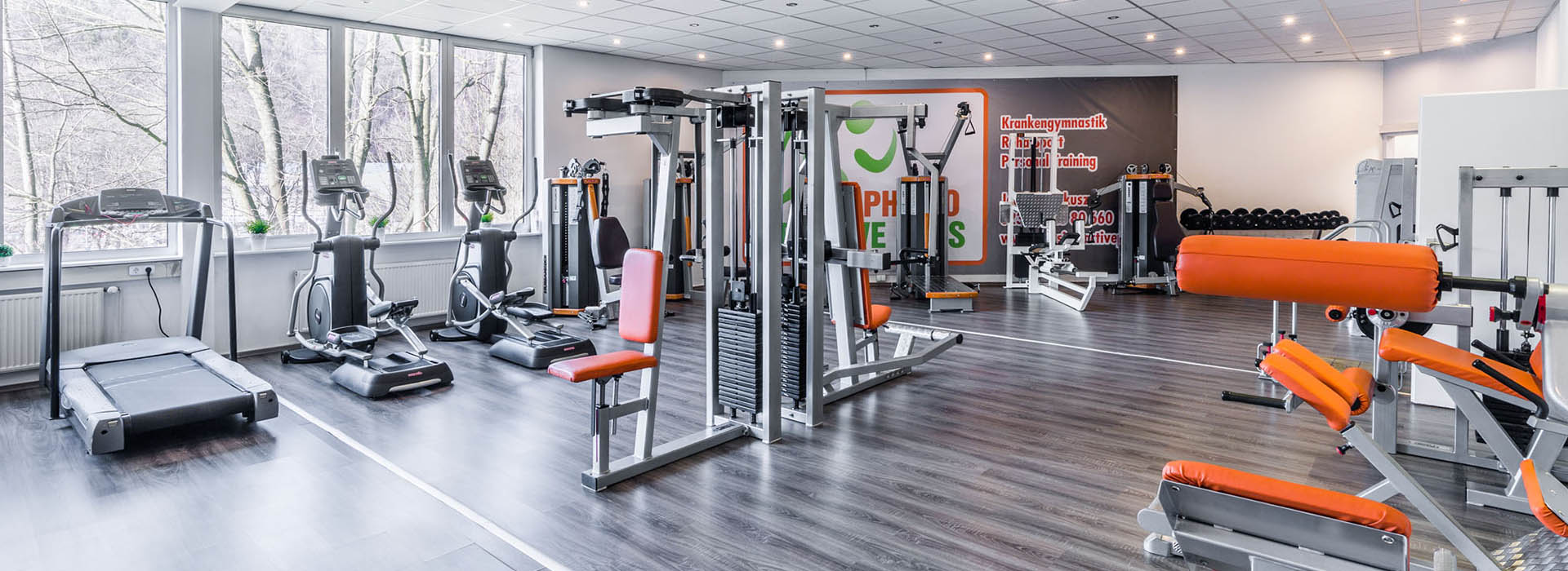 Ein wichtiger Bestandteil unseres Ansatzes ist das integrierte Gym mit modernen Trainingsgeräten. Hier begleiten wir Sie vom ersten Termin bis zum aktiven Aufbau in klimatisierten Behandlungsräumen, einem großzügigen Geräteraum mit Blick auf die Lenne und einem hellen Kursraum.